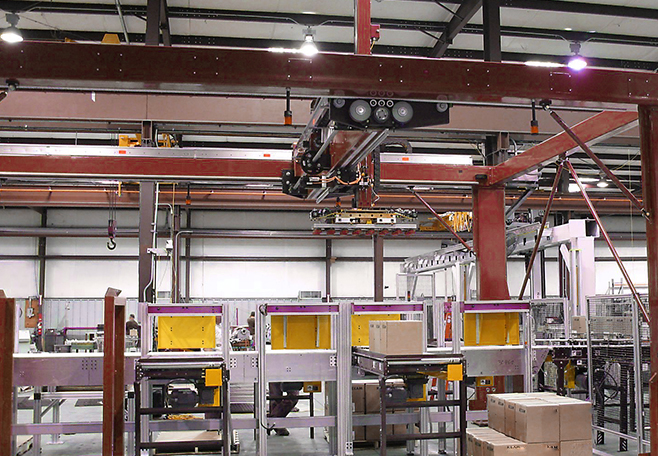 億峯提供輪胎出入庫桁架式機器人,實現跨度大,速度快,占地面積小,提供整套交鑰匙工程。